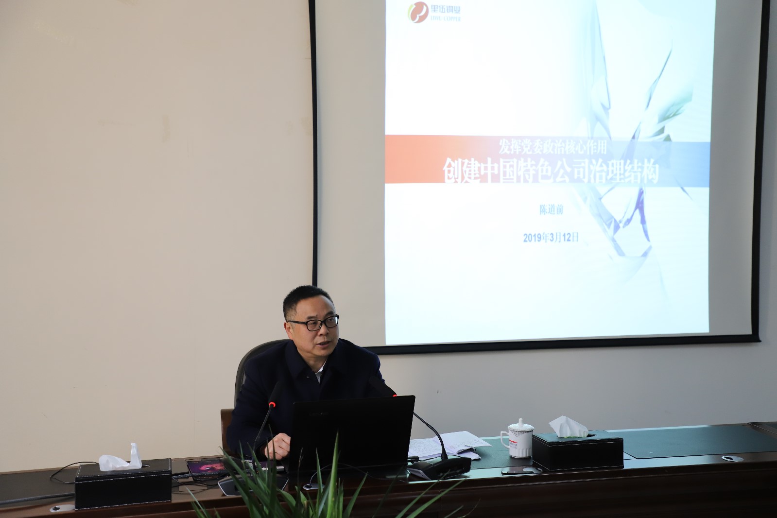 3月12日上午,公司党委书记、董事长陈道前在雅砻江矿业以“发挥党委政治核心作用,创建中国特色公司治理结构”为题上了一堂生动的党课。公司高级管理人员、下属单位经营班子成员和公司各级党组织书记参加本次党课学习。